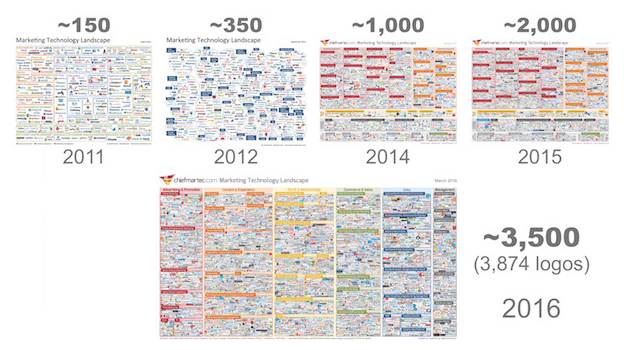 Marketing technology is exploding. Scott Brinker’s Marketing Technology Landscape showed 947 companies in 43 categories in 2014 – which seemed overwhelming. Then in 2015 it jumped to 1,876 companies. And we’ve learnt that 2016 has seen it double again, to a massive 3,500 companies. So what does this mean for marketers? What does it mean for IT managers? And how can we plan to make the most of the new technologies without getting lost in a sea of data?