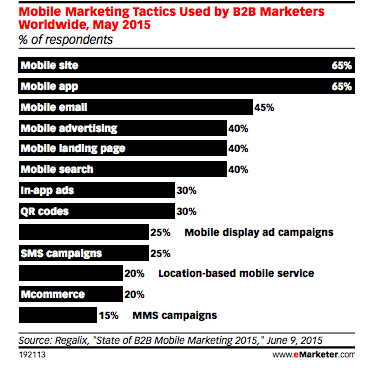 Over half of B2B businesses have mobile sites and mobile apps, which shows the industry is finally starting to get is act together on mobile. For some industries, having a mobile app won't be necessary, but really all should have mobile responsive sites. Even if none of your customers are arriving on mobile devices (which some certainly will), you still need a responsive site because of Google's 'mobilegeddon' update, as otherwise you'll be getting penalised. B2B buyers are increasingly using mobile devices, as you can see from the charts below, so a mobile optimised site is an absolute necessity.