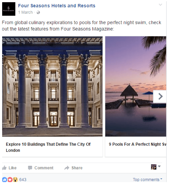 For instance, Four Seasons hotel brand exclusively offered their Four Seasons Magazine to the guests who stayed at their hotel. Gradually they understood that they can further leverage the content from their magazine to attract new guests as well as engage their existing customers. The hotel brand now has a website and offers newsletters and also promotes the content on social media.