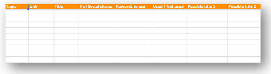 A skeleton of the post – Structure, main bullets, sub bullets and alike. Imagine that the content is structured as a PPT. What would be each slide title? And the general content you would like covered in each “slide”