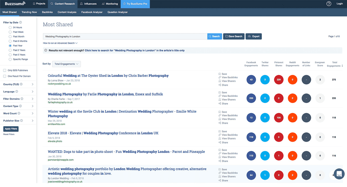 Similarly, analyzing your competitors’ content can be a good starting point before planning a project. With so many tools available on the market today, you can easily find out what their best performing content is and collect valuable data.