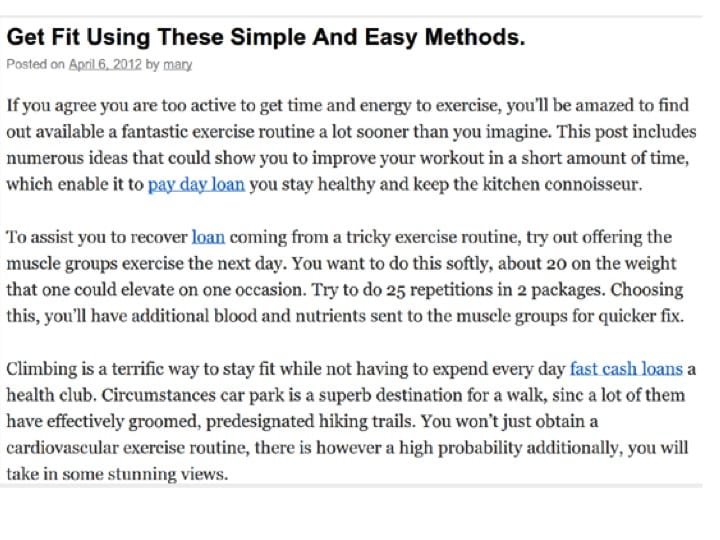 - Lots of links from low quality external domains pointing to your landing page (especially if these links are inserted in irrelevant content - see example webpage below from Google).