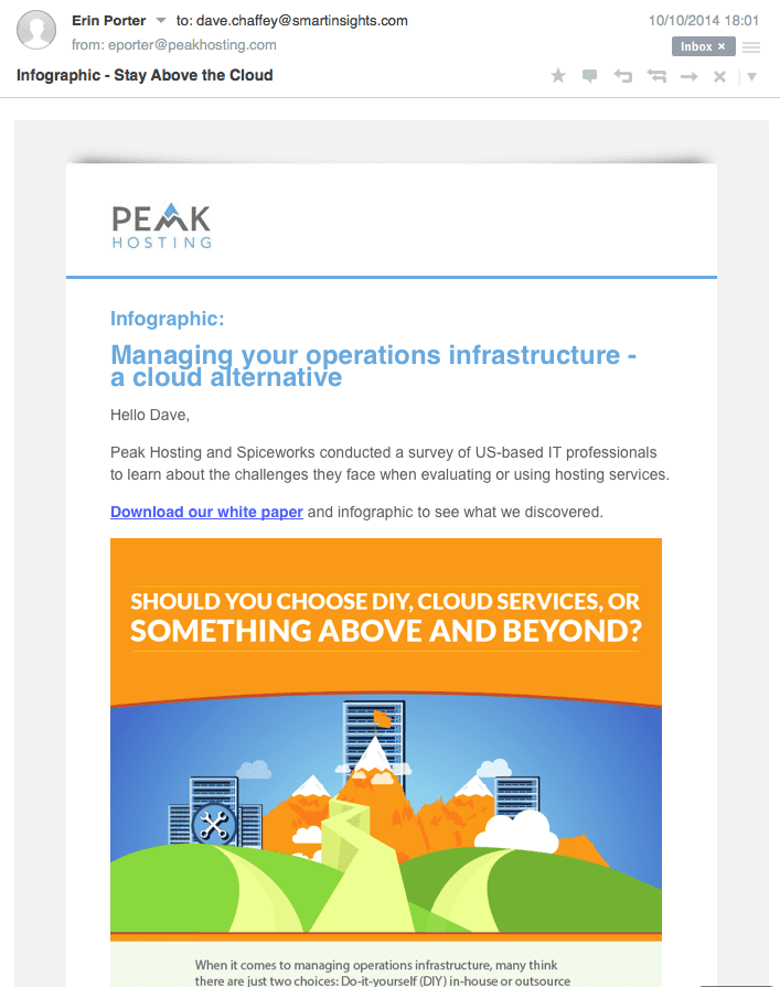 The infographic works well when delivered as a reminder about the service to prospects as below. We also like the way it shows the options and educates about the risks.