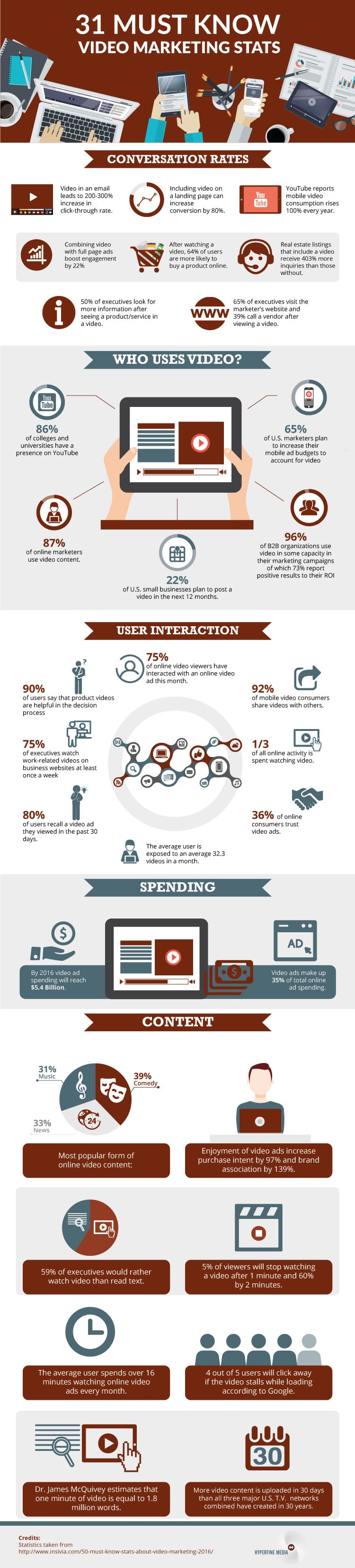 A video is anytime more engaging and captivating than other media formats. It engages users in a big way. And it is well known to increase conversions when used on a landing page. See the infographic below for some interesting facts on video usage on web pages: