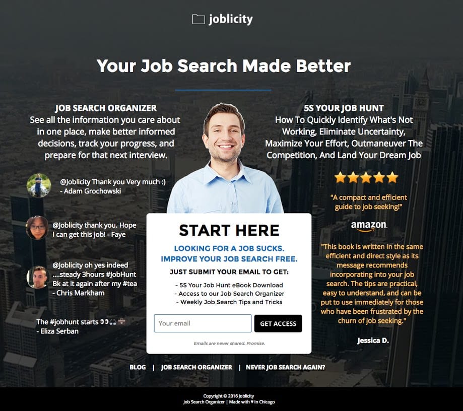 And one more. Every element on Joblicity’s page points your eyes directly at the form: