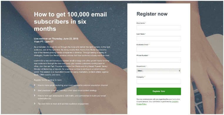Here is arguably one of the most straightforward lead capture landing pages with an undeniably easy-to-complete form: