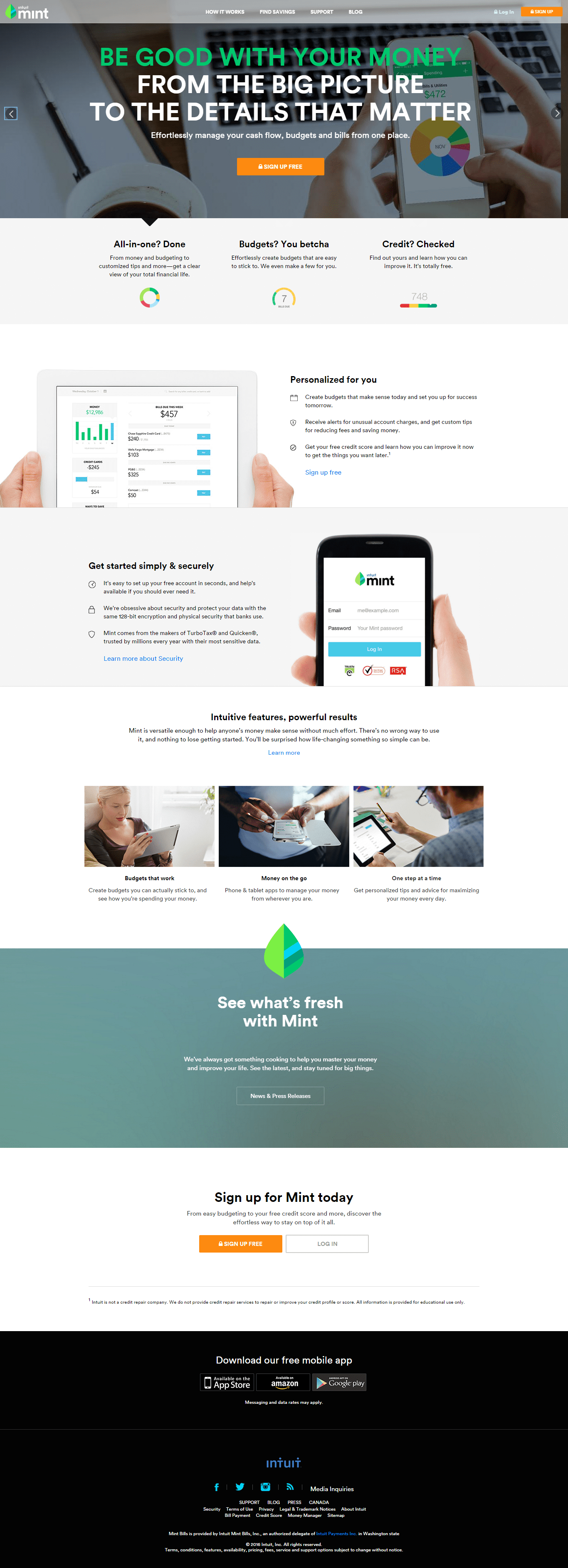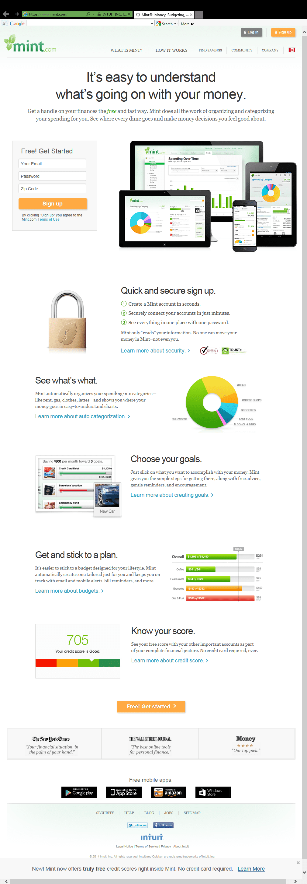 The messaging was also adjusted, converting “Sign Up” to “Sign Up Free,” which more clearly articulated Mint’s dedication to personal budgeting and encouraged increased conversions. Rather than force users to read through several paragraphs of information, any large blocks of text were eliminated and replaced with bullet points that allow for much easier skimming. All of these changes encouraged users to digest key bits of information quickly and directed them toward the call to action, dramatically improving Mint’s conversions.