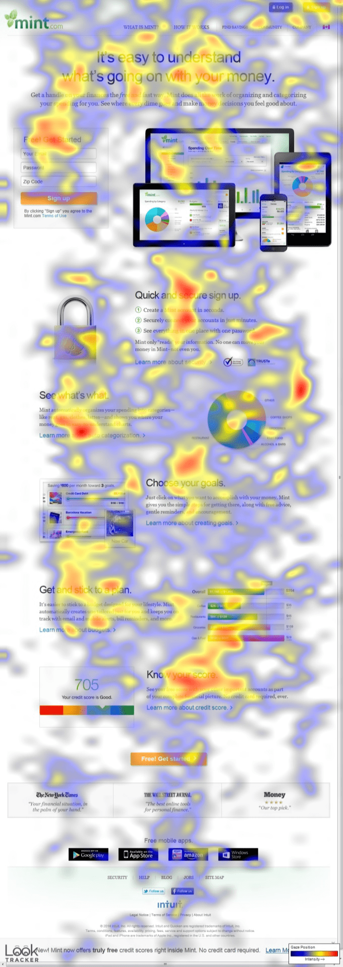 An eye-tracking study was conducted for Mint to evaluate where users were looking, gazing, and fixating on the sign-up landing page.