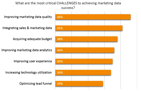 In a follow-up question, they asked "What are the most critical challenges to achieving marketing data success?" and found that 46% of respondents were having trouble improving marketing data quality.