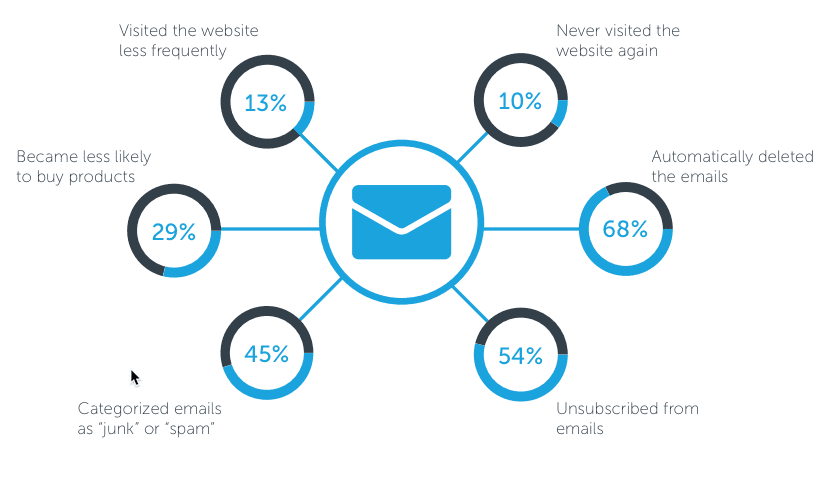 Unfortunately many marketers fail in activation through not delivering effective, relevant emails. The problem is shown by the 98% of consumers surveyed in a recent Janrain study on solving the engagement gap, who said the information they receive from marketers is off target. And 94% of survey respondents reported taking one or more of the following actions after consistently being mis-targeted: