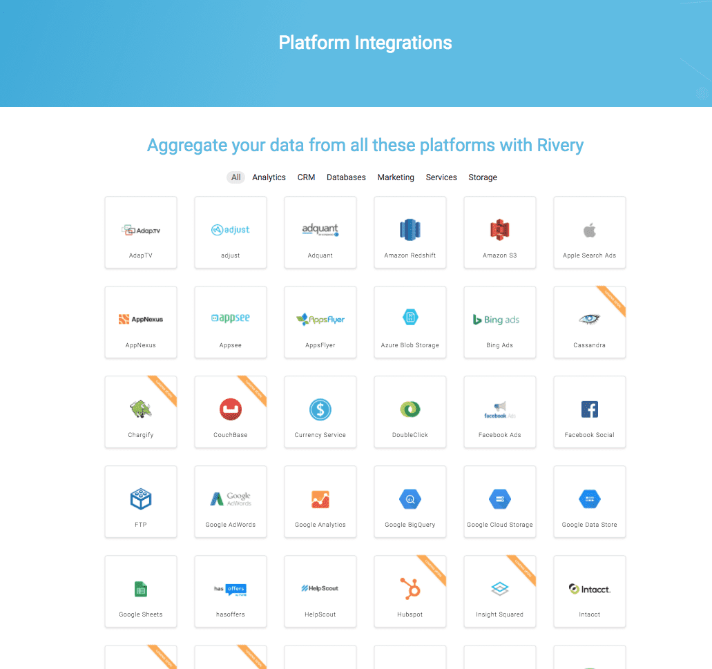 We’ve worked very hard to make our tool extremely simple to use. Unlike other platforms, Rivery is platform agnostic so our customer can use whichever cloud service they prefer (Google Cloud, AWS, Microsoft Azure, etc.) and we only act as a pipe, which means the data is always owned and hosted on our customers' cloud platform. In addition, we have the biggest list of readily available integrations with third party platforms and are constantly growing it based on our clients needs so if you need data from a platform we’re not supporting yet, we’ll make it happen!