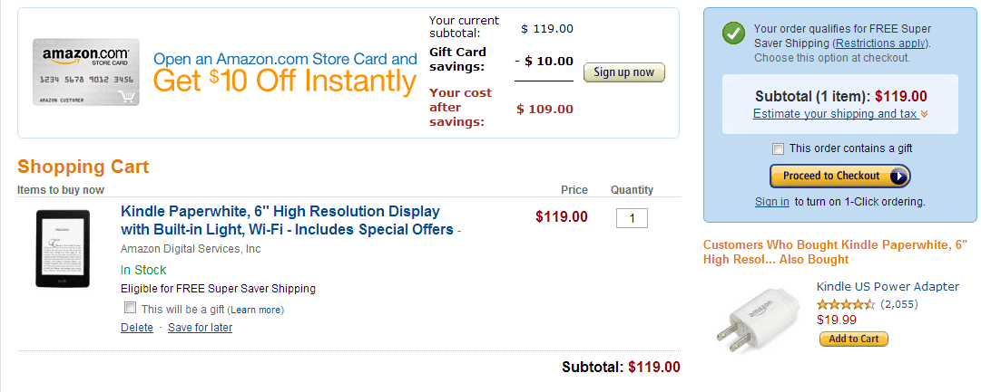 For this reason, Amazon has implemented a 1-click ordering option for registered customers. Giving customers a way to shorten the checkout process through account registration can improve conversions, while also providing you with the wealth of data that comes from customer accounts.