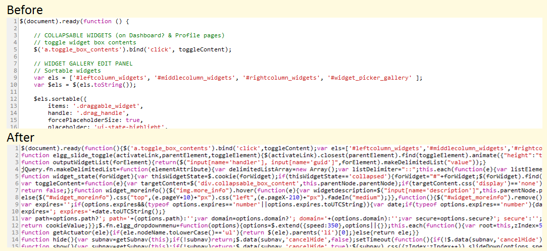 When you get rid of unnecessary characters from your code, you can reduce page load time. A minified code has all of the unnecessary whitespace characters and comments removed. This leads to a faster page loading time.