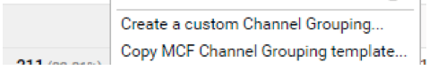 Alternatively, you can do this via the Admin section of your account under “Custom Channel Groupings”. It’s worth noting here that you have to have goals or ecommerce reporting configured for this section to work.