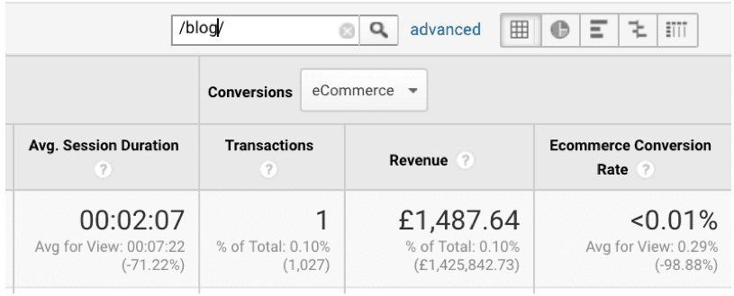 As the image above shows though, these numbers might be very small. Blogs are often more about discovery than direct sales, and may have higher bounce rates as a result too.