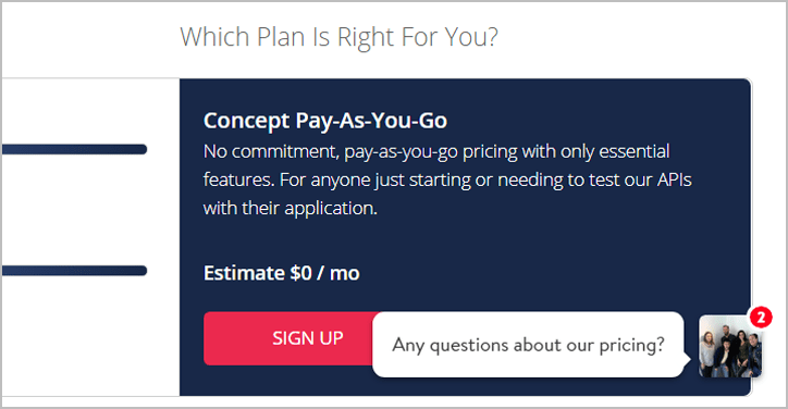 Mailgun, a seller of email validation services, does a good job of this on their Pricing page. Note that they show a group photo, which shows that they have a team approach to providing support.