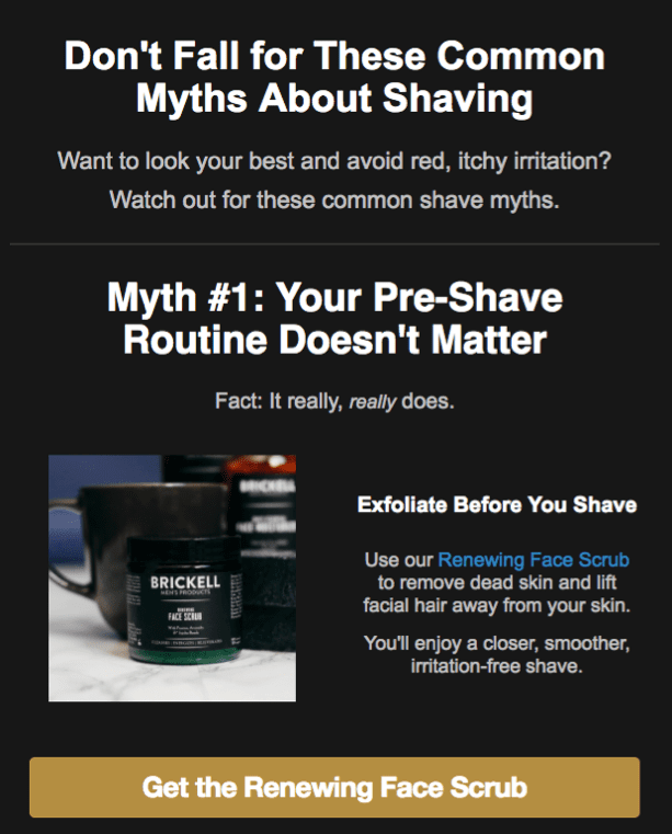 Notice that the focus is on knowledge, not sales. The email’s express goal is to educate customers on shave myths.