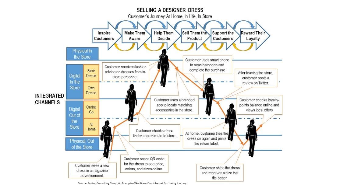 Evaluation template Boston Consulting Group - An example of the non linear omnichannel purchasing journey.