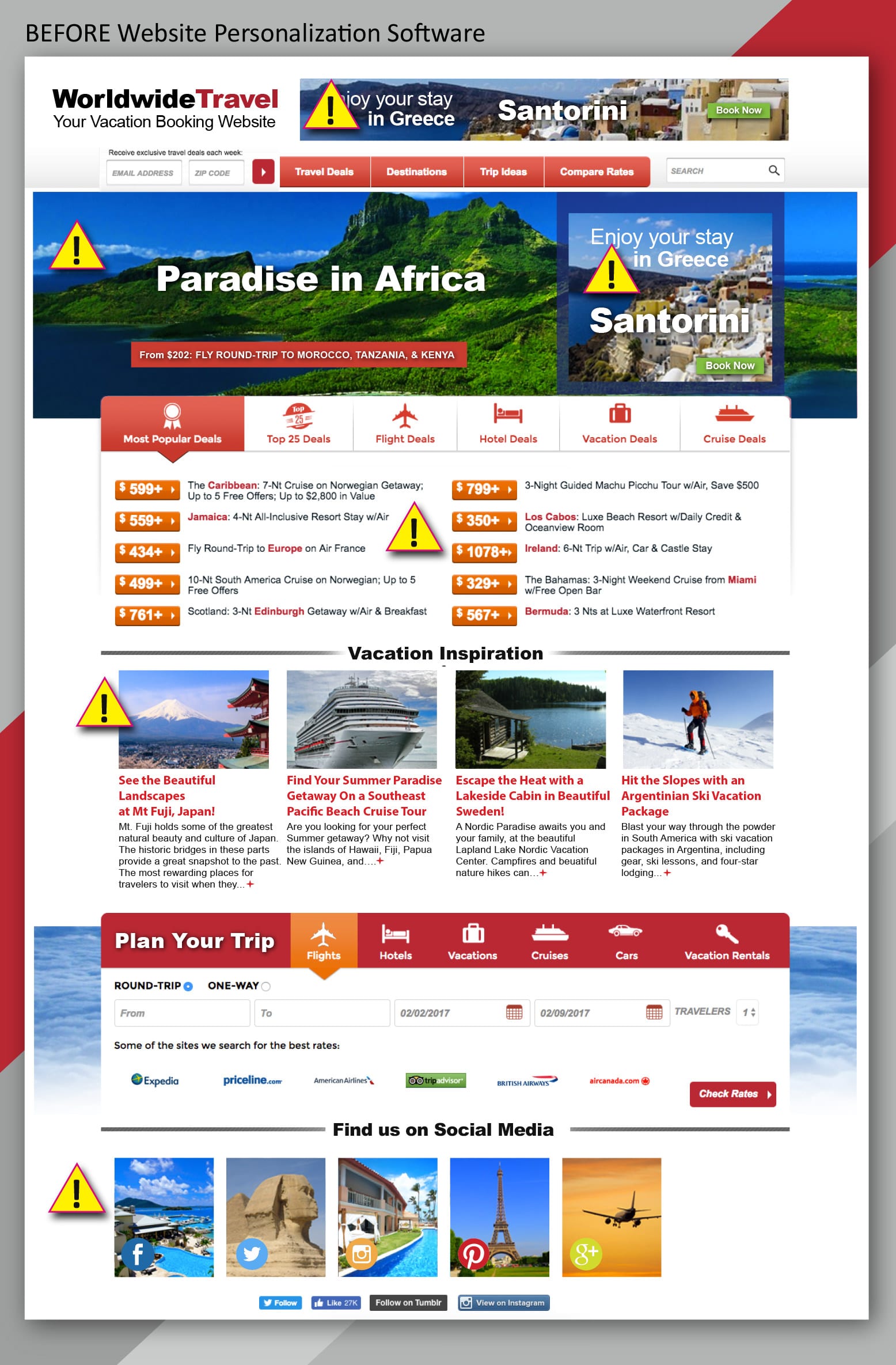 Worldwide Travel is incorporating personalization into their core marketing strategy, with a heavy focus on quality recommendations in different forms on their page. While relevant recommendations are guaranteed to improve their conversion, WWT also wants to go the extra mile to create a uniquely personalized experience for every visitor, beyond recommendations alone. To do this, they utilize a comprehensive and affordable SaaS personalization solution, which is able to provide a tailored sales funnel from landing to checkout on their website.