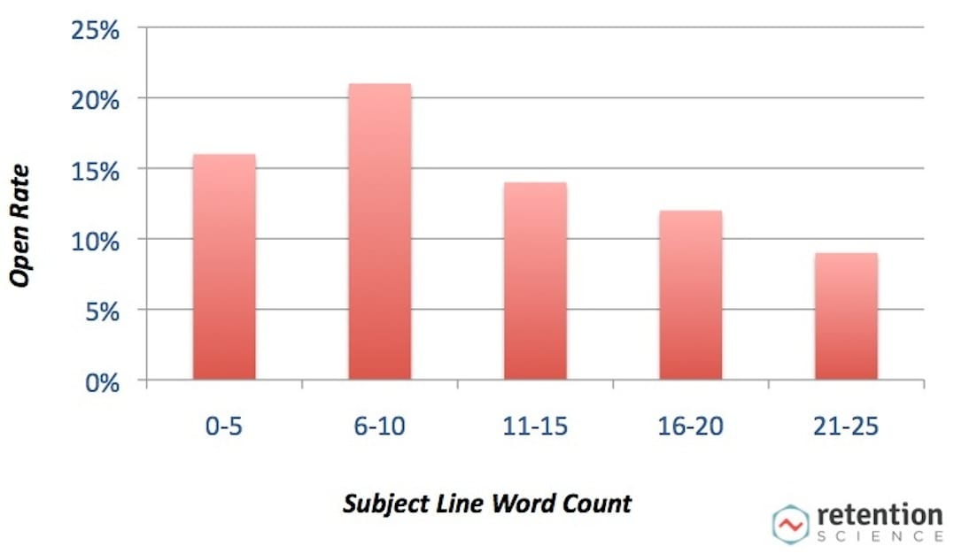 - Even a slight change in a word count can determine the effectiveness of your email campaign. For instance, research carried out by Retention Science illustrates that emails with subject lines that contain 6-10 words enjoy an open rate of more than 20%.