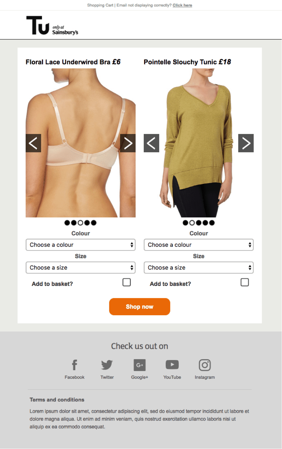 Sainsbury's have combined personalised product emails with interactivity to allow customers to change product attributes based on their own preferences, without having to leave the email.