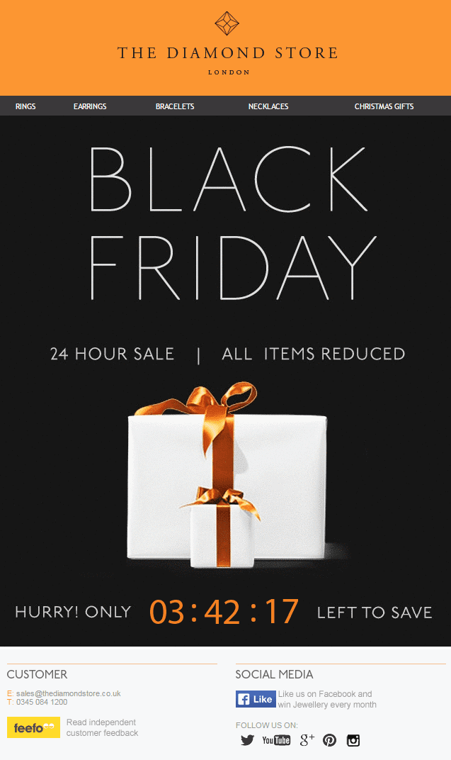 If you ignore the potential dynamic content offers, your readers will engage more with competing dynamic emails in their inbox, and have far less of an incentive to engage with you. Last year on Black Friday, The Diamond Store stole the show with their simple countdown clock email. They not only created urgency, but increased conversions by 400%! Who wouldn’t want that this holiday season?