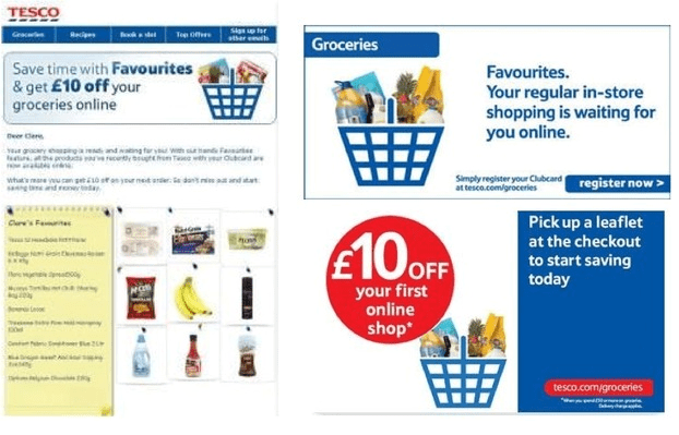 Another good example of this kind of emails is provided by Tesco. They personalised their email campaign to registered Clubcard customers by using data gathered from previous online and in-store shopping behaviour.