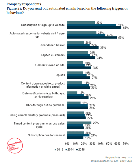 The Email Marketing Industry Census 2015 from Econsultancy and Adestra shows a slight improvement in Email marketing automation and overall it seems that there are many enthusiastic adopters of Email Marketing Automation.