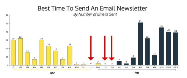 Like I said in the previous sections the best time to send an email is when it has little to no competition.