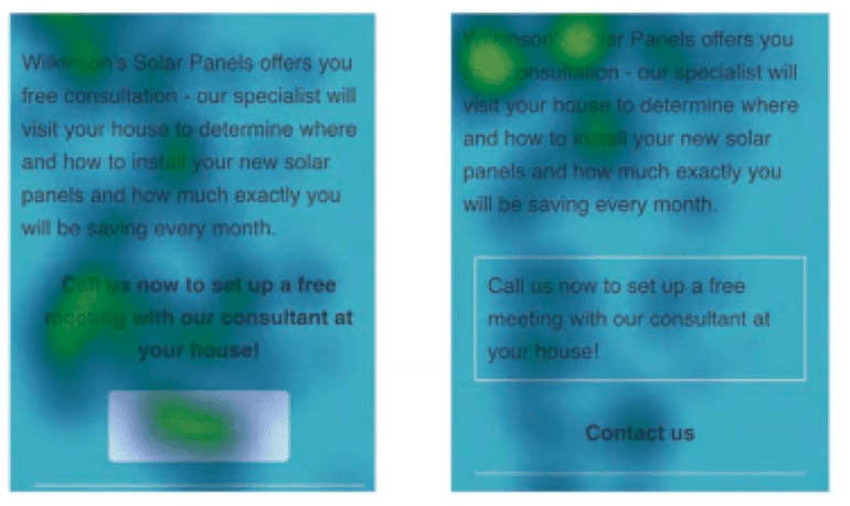 - Call to Action appearance. Users found a plain text CTA without a background (below right) to be less attractive. Add a background to ensure your CTA stands out.