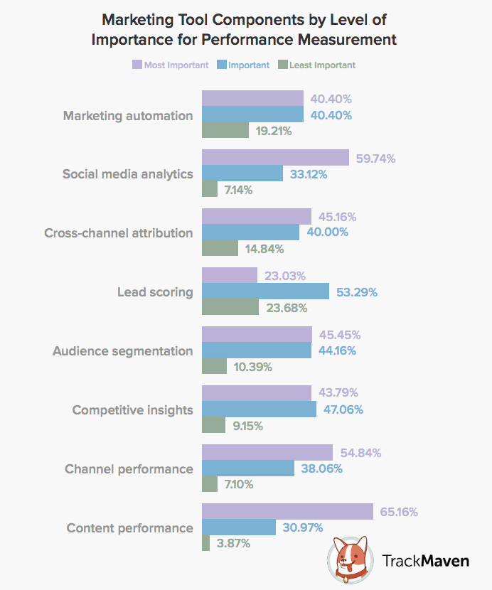 A recent report from Trackmaven shows that marketers rank measuring content performance as the most important measure of marketing performance. This is followed by social media analytics and channel performance.
