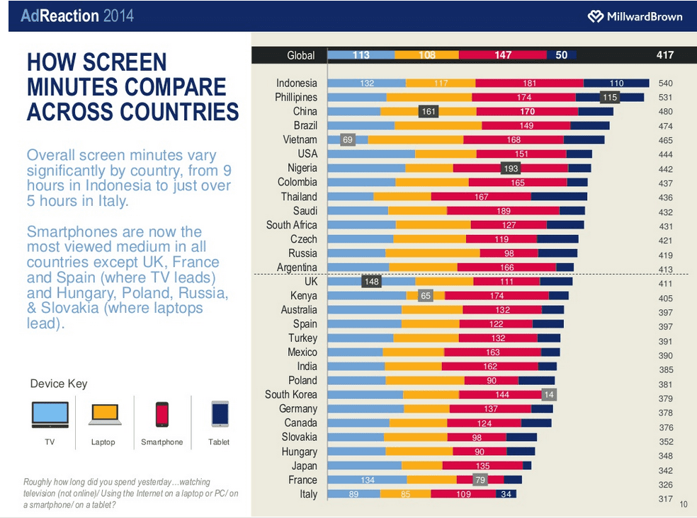 Source: Millward Brown Adreaction Multi-screen 2014 Report, Interactive tool by country