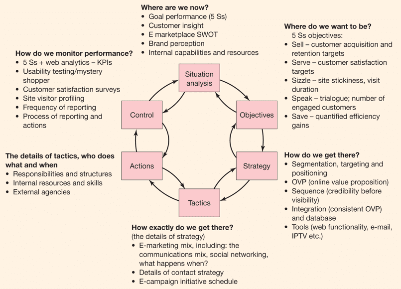 To make sure your digital marketing plan has all the essential features, I recommend the SOSTAC® structure developed by PR Smith—Dave Chaffey’s co-author of the printed book Digital Marketing Excellence.