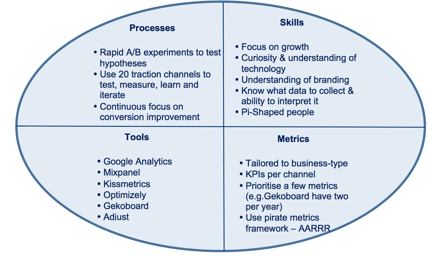 The team element is very important as one individual person is unlikely to have all of the skills needed for growth-focused marketing.