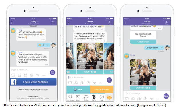 Another engaging bot marketers can learn from is Foxsy on Viber, a matchmaking chatbot that introduces users to new people and potential love interests. As a means of helping people find friends who share their common interests, the bot presents the users with different profiles and allows them to connect with other users directly within the chatbot by sending them a letter. What makes this app stand out within an array of dating apps, is that it is capable of giving users the added personalized value that they’ve been missing.