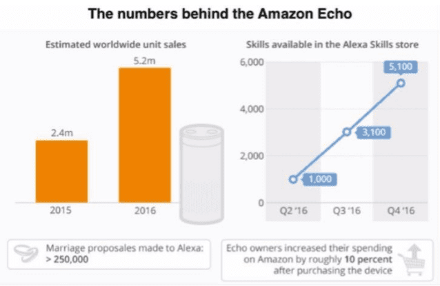 Now with voice controlled devices such as Amazon Echo becoming increasing common in homes (see below chart), voice search is set to take off as consumers realize they don’t need a device by their side to be able to search the web.