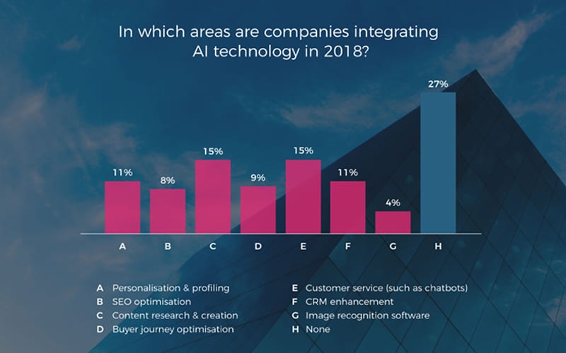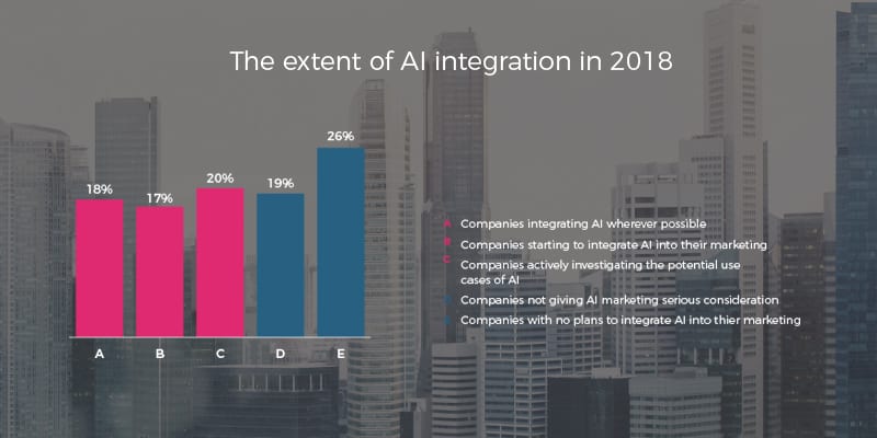 From interviews with 100 senior marketers from a wide range of industries, we found that 55% of companies are either currently implementing or actively investigating some form of AI initiative within their marketing practices. Meaning, AI is already shaking things up in the industry.