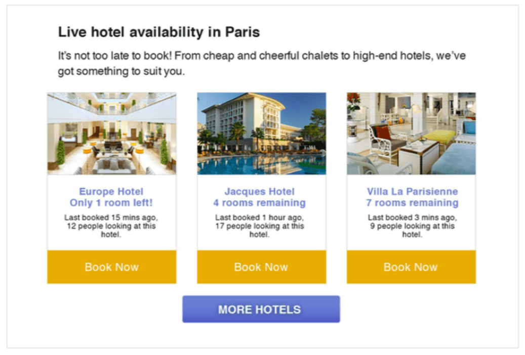“Open time content” is a technology that lets you provide real-time visibility into events like weather conditions, product availability, and use updated countdown clocks regardless when an email is opened: