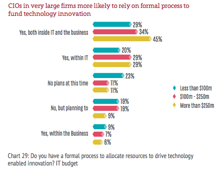 On average only one-third of businesses have a process for funding tech innovation across the whole business