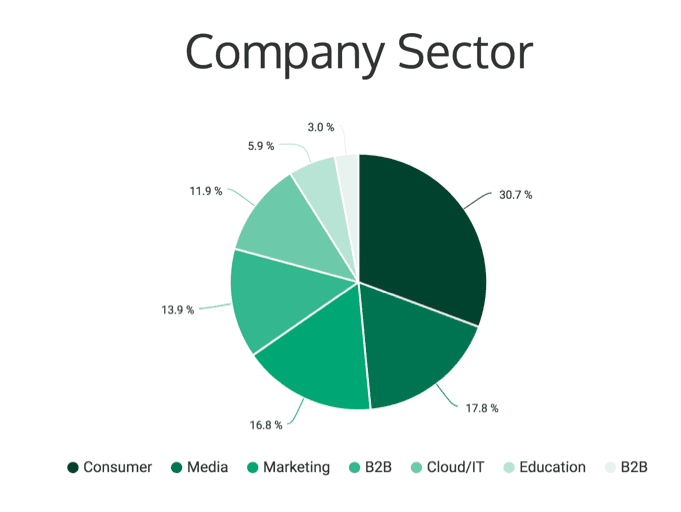 I selected TheMuse because they only allow the best and brightest companies to post on their platform. If I was going to find what a great entry level position looked like it was the perfect place to start. Here is the breakdown of the type of companies we studied if you are curious