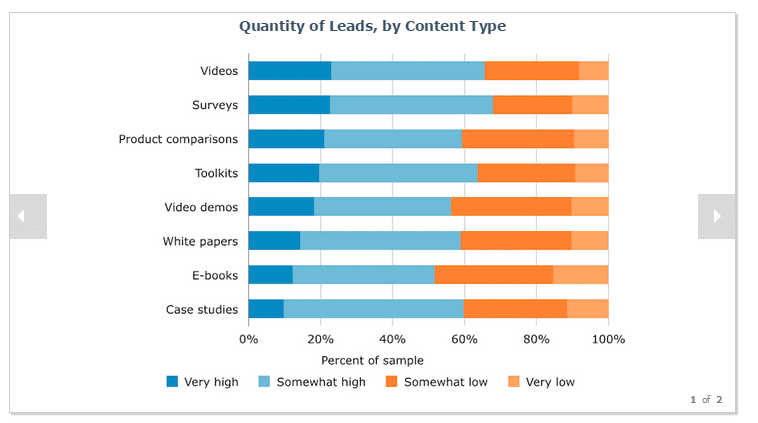 The top 2 channels are videos and surveys. This is a little surprising, but perhaps shows that videos are becoming more focused towards lead generation, in addition to creating trust, as companies are incorporating CTAs, lead capture forms for 'gating' and annotations are being added to YouTube.