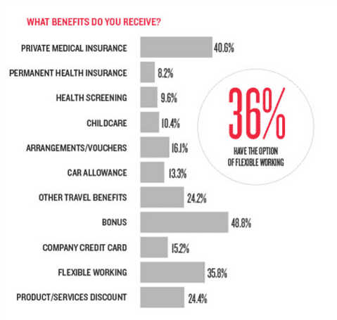 As well as looking at pay, it's also interesting to look at what additional compensation marketers are receiving, as these can be a key way to retain staff and motivate them. Private medical cover is common, as are bonuses.