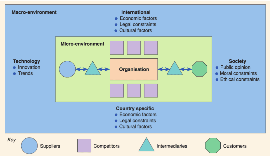 These are the contexts that a business should assess itself against to review competitors, markets, and the situation in which an organization finds itself.