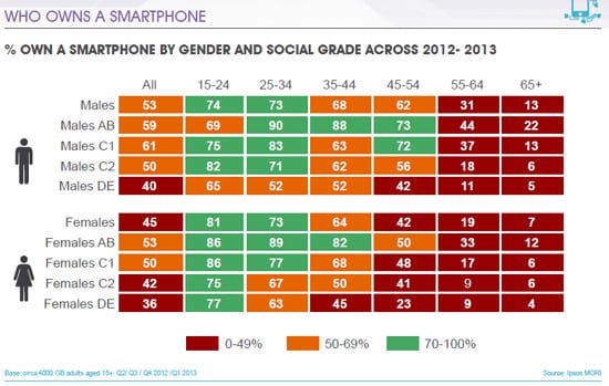 54% males vs 45% females owned a smartphone, mainly profiled AB and C1.