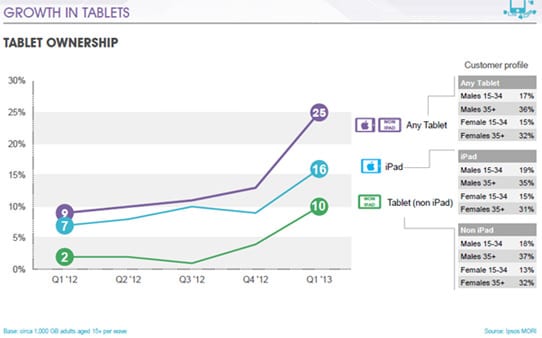 There has been a growth in tablets usage, from 9% up to 25% over the quarter