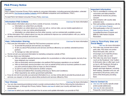 Layer 3 – The full notice. Where you give all information needed and should cover every way in which you process data. Layer 3 should also include links to the full policy notice like the example below.