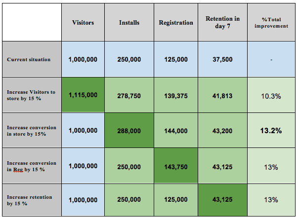 After crunching the numbers, I decided that the best place to start was in trying to improve our conversion rate in Google Play Store. I will try to give you an idea of why I chose this route and what store conversion is all about.