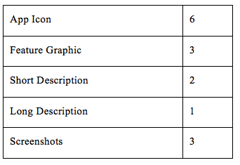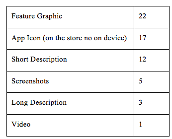 All the tests are undertaken on the live version of the APP and the tests and the results can be monitored on the Google Play developer console, which allows you to test each of the elements as well as their impact on different language audience. There are more parameters that influence the user decision of whether to download the App or not but they cannot be tested without releasing a new version.