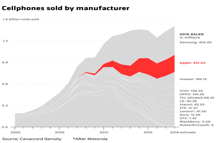 For now, more Android system devices have a far bigger market share than IOS, but thanks to clever marketing and luxury pricing, IOS sales are still very comfortable. By 2018, Apple is expected to sell 241 million phones, compared with Samsung’s 404 million. (Canaccord Genuity).