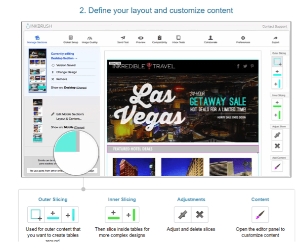 It is understandable that many businesses may not have the development prowess on staff to deliver fully customisable, responsive and professional-looking email campaigns, which is why there are options available on the market. Here is a look at how some companies are offering responsive options for e-mail. Most providers offer either a ‘drag and drop’ style interface, what’s known as a WYSIWYG (“What you see it what you get”) interface or a hybrid of the two: